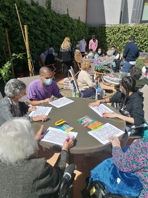Con motivo del fin de prácticas de un grupo de alumnos de la empresa de ascensores FAIN, se nos ofreció realizar un encuentro intergeneracional con nuestras residentes. Durante la mañana del jueves 26 pudieron disfrutar de juegos y diferentes actividades al aire libre y al terminar, las residentes, recibieron un obsequio por parte de los voluntarios.